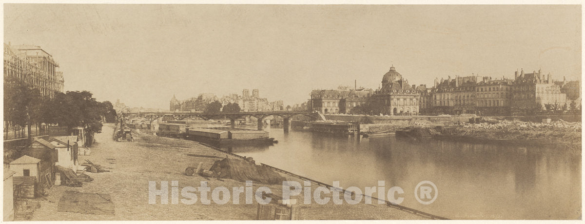 • .Art Print : Charles Marville, The Seine from The Pont du Carrousel Looking Towards Notre Dame, 1853 - Vintage Wall Art