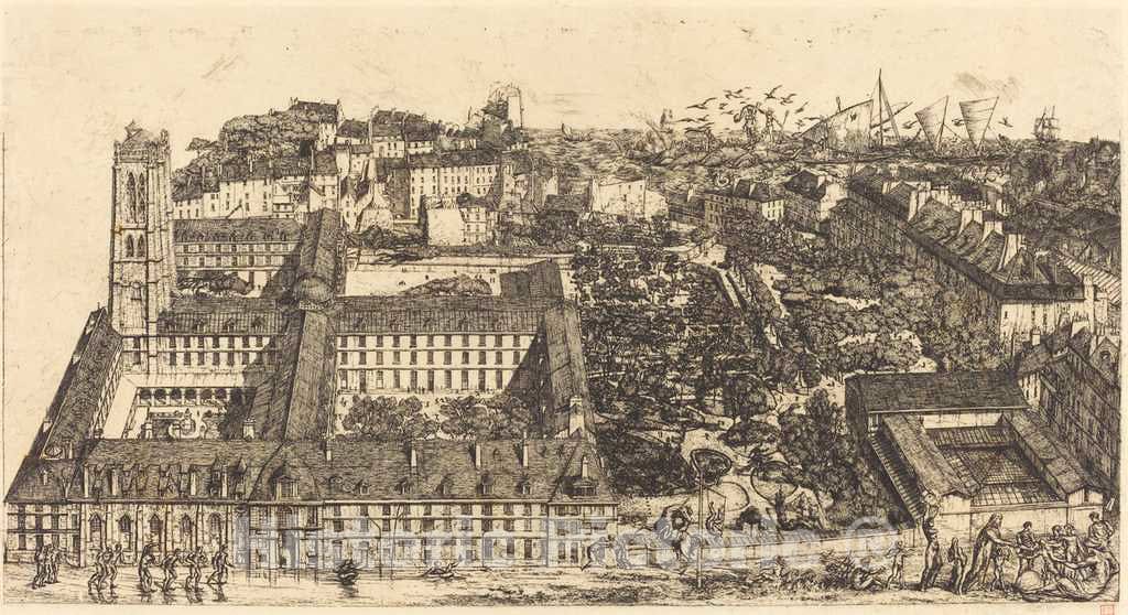 Art Print : Charles Meryon, Collège Henri IV, Paris, ou Lycée Napoléon (Henry IV College or Napoleon School, Paris), 1864 - Vintage Wall Art