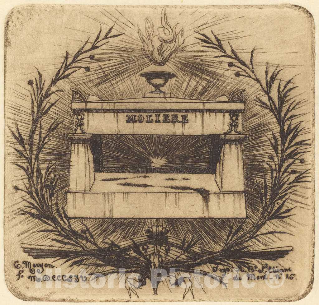 Art Print : Charles Meryon, Le tombeau de Molière, au Père-Lachaise, Paris (Moliere's Tomb, in Père-Lachaise Cemetary, Paris), 1854 - Vintage Wall Art