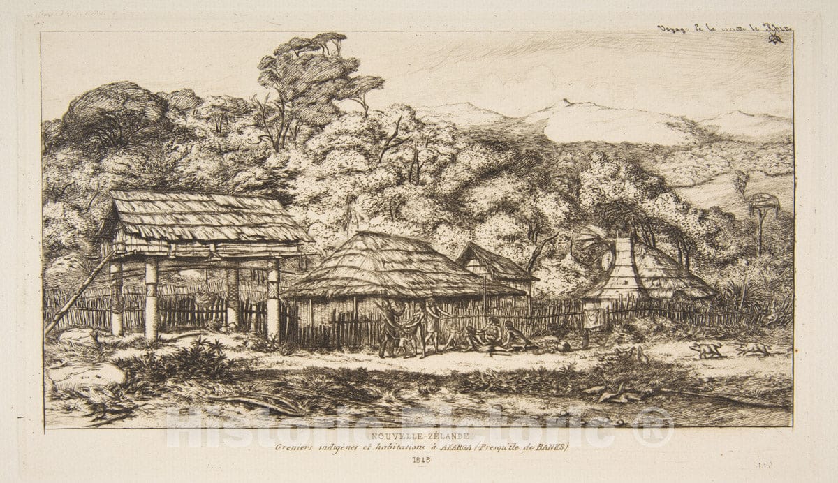 • .Art Print : Charles Meryon, Native Barns and Huts at Akaroa, Banks' Peninsula, 1845, 1865 - Vintage Wall Art