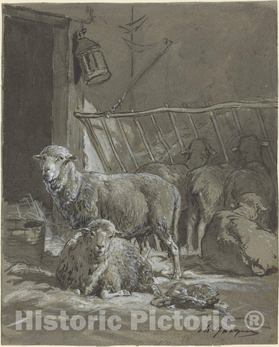 • .Art Print : Charles Émile Jacque, Sheep in a Manger - Vintage Wall Art