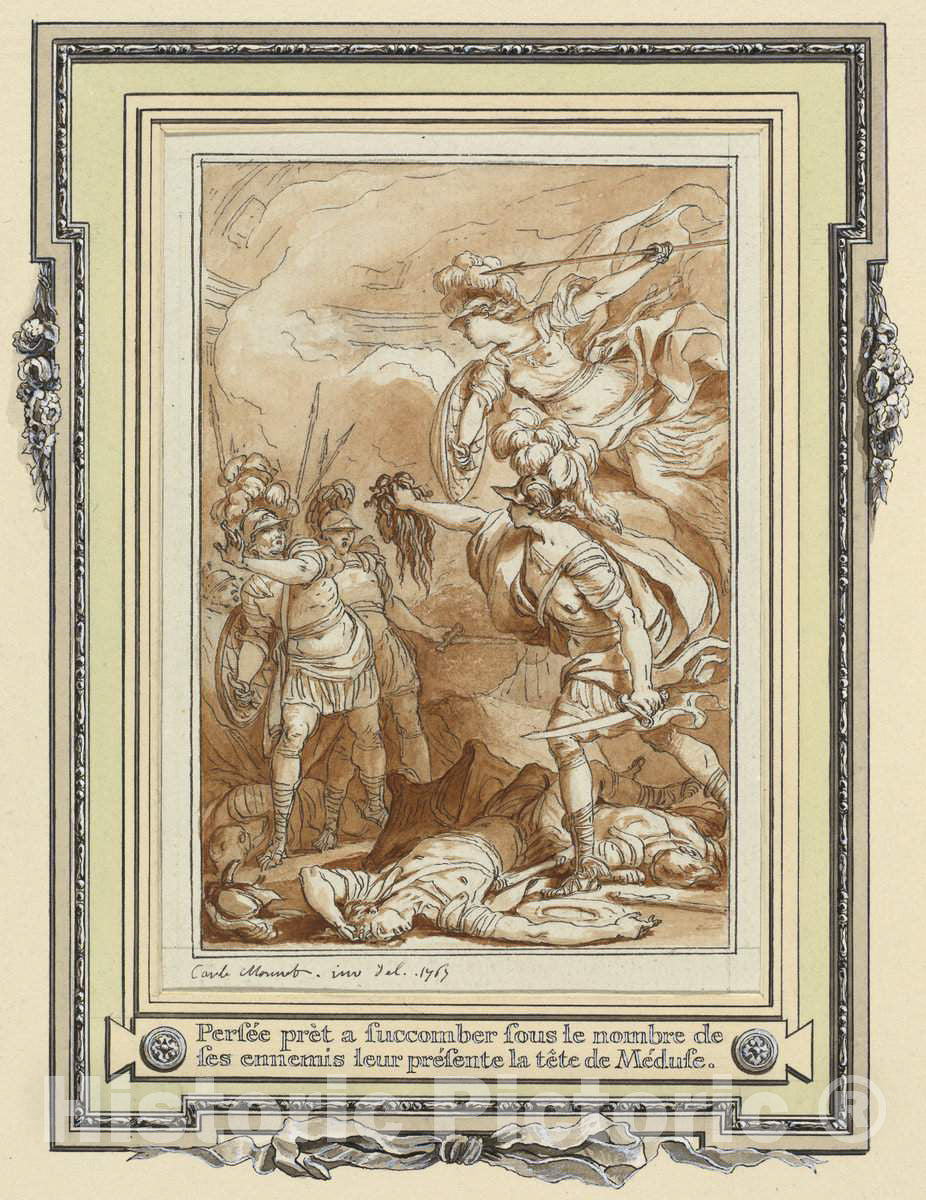 Art Print : Charles Monnet, Perseus Turning Phinneas to Stone with The Head of Medusa, 1767 - Vintage Wall Art