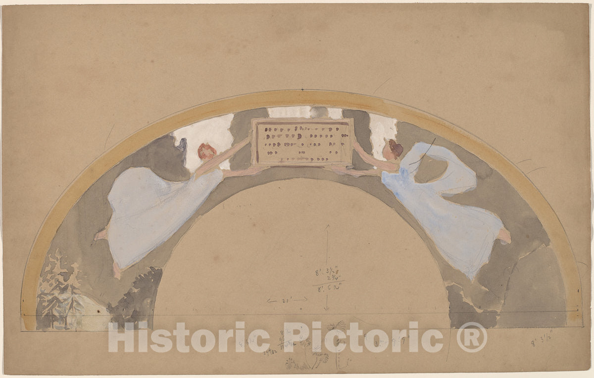 Art Print : Charles Sprague Pearce, Study of Two Female Figures in Arched Border, c.1894 - Vintage Wall Art