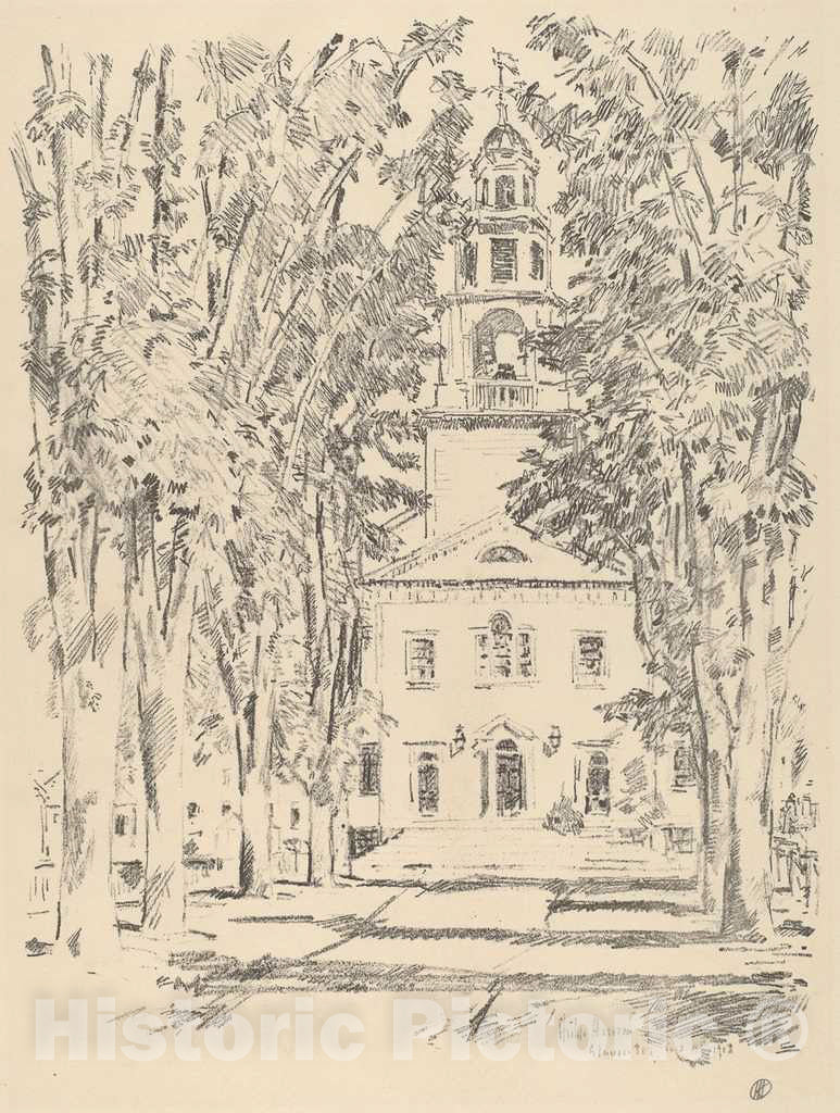 Artist: Childe Hassam | Print: Colonial Church, Gloucester | Original Medium: lithograph