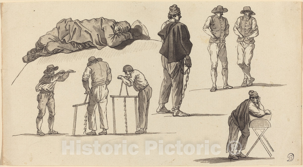Art Print : Claude-Joseph Vernet, Figure Studies, Including One Man Sleeping on The Ground and Two Men Sawing - Vintage Wall Art