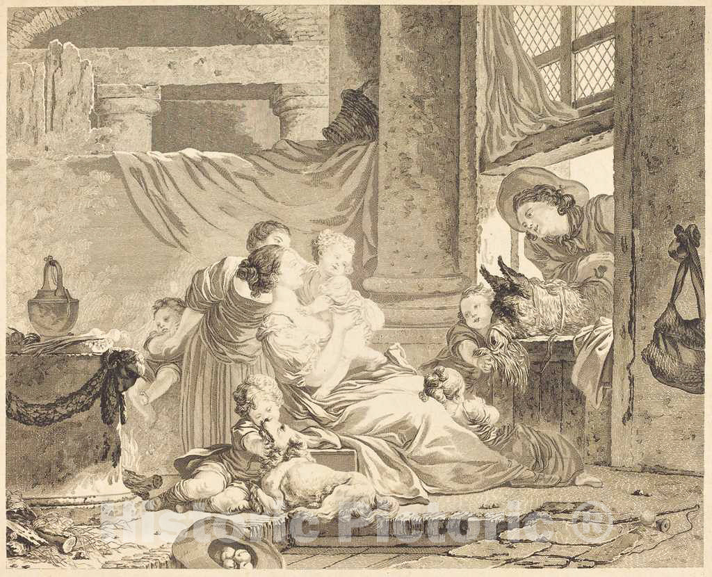 Art Print : Clément-Marillier After Fragonard, La famille du fermier, 1791 - Vintage Wall Art