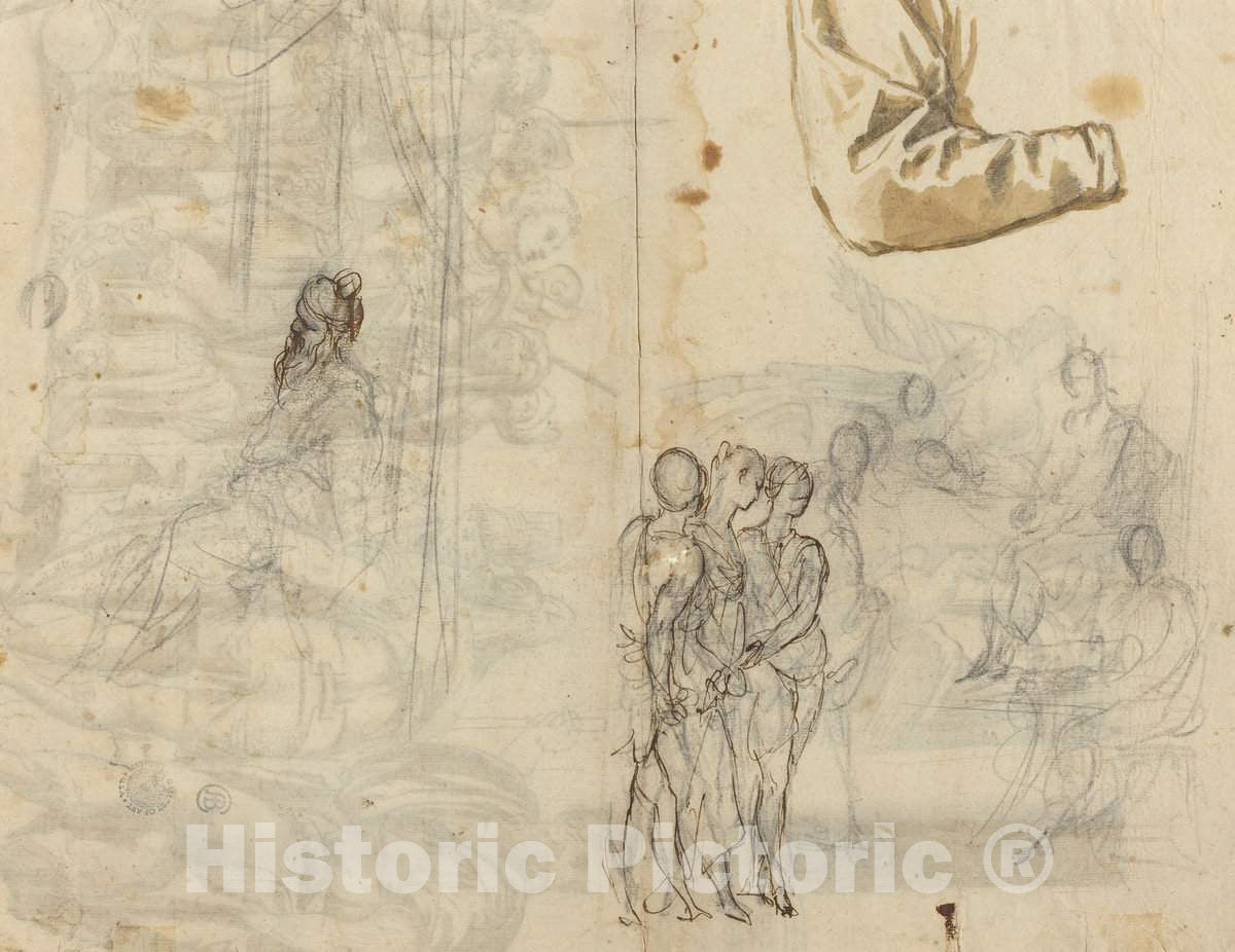 Art Print : Copy After a Historical Painting from The Circle of Paolo Veronese [Recto], 16th Century - Vintage Wall Art