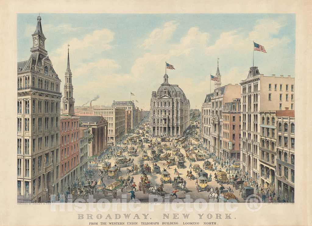 Art Print : Currier and Ives, Broadway, New York: from The Western Union Telegraph Building Looking North, 1875 - Vintage Wall Art