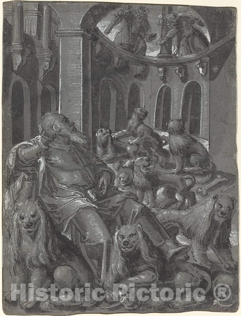 Art Print : Daniel in The Lions' Den [Recto], c. 1600 - Vintage Wall Art