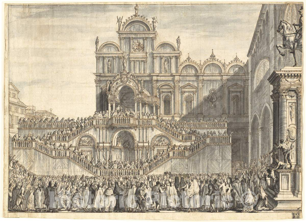 Art Print : Domenico Fossati, Campo San Zanipolo Decorated for The Visit of Pius VI, 1782 - Vintage Wall Art