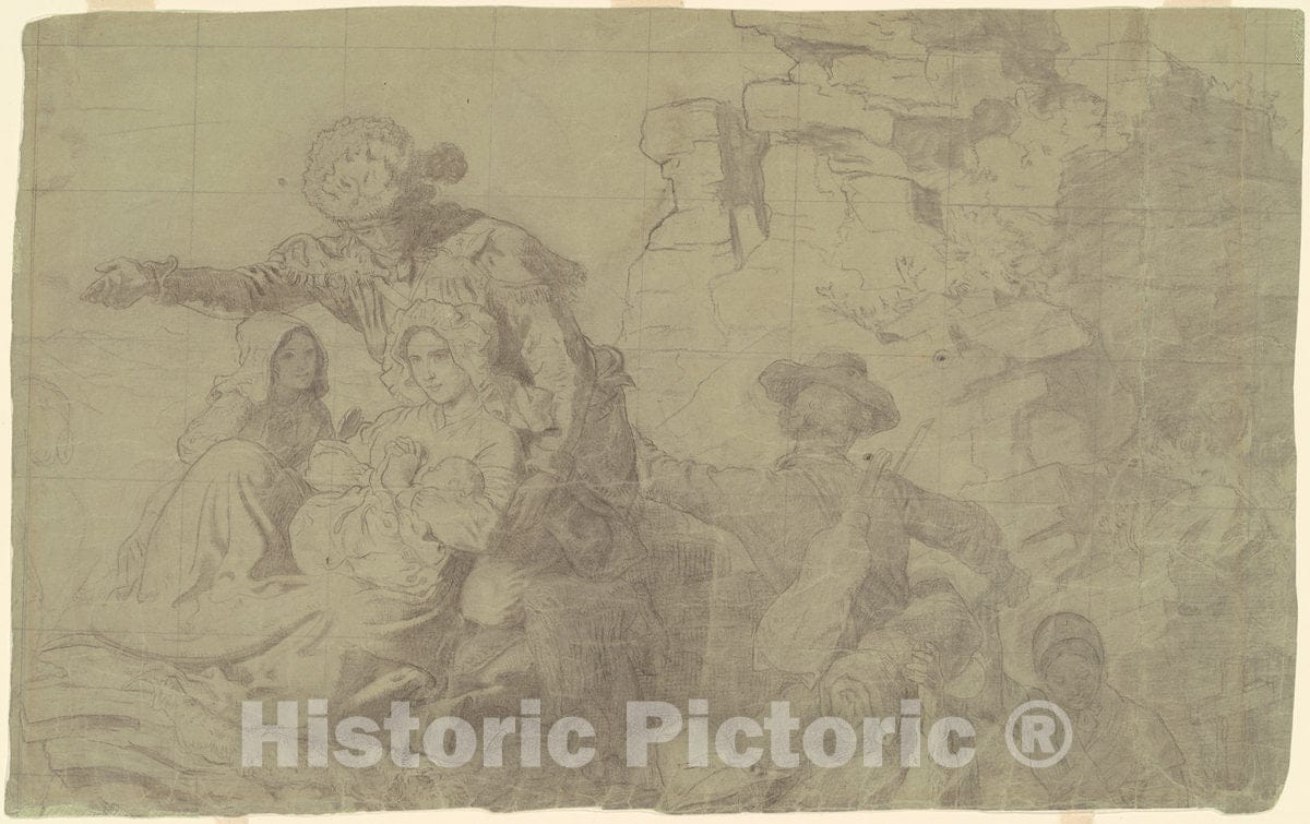 Artist: Emanuel Gottlieb Leutze | Drawing: Study for "Westward the Course of Empire Takes Its Way" | Original Medium: graphite on gray-green wove paper