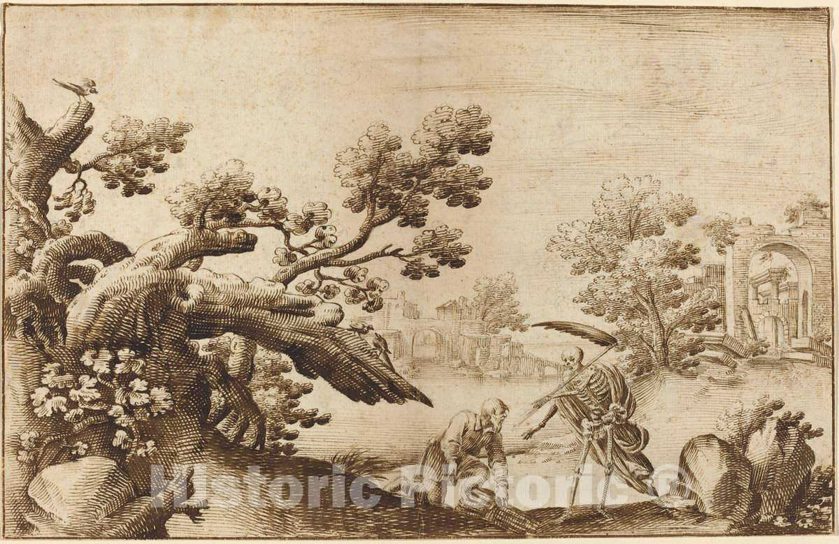 Art Print : Ercole Bazicaluva, Death and The Woodman in a Coastal Landscape with Ruins - Vintage Wall Art