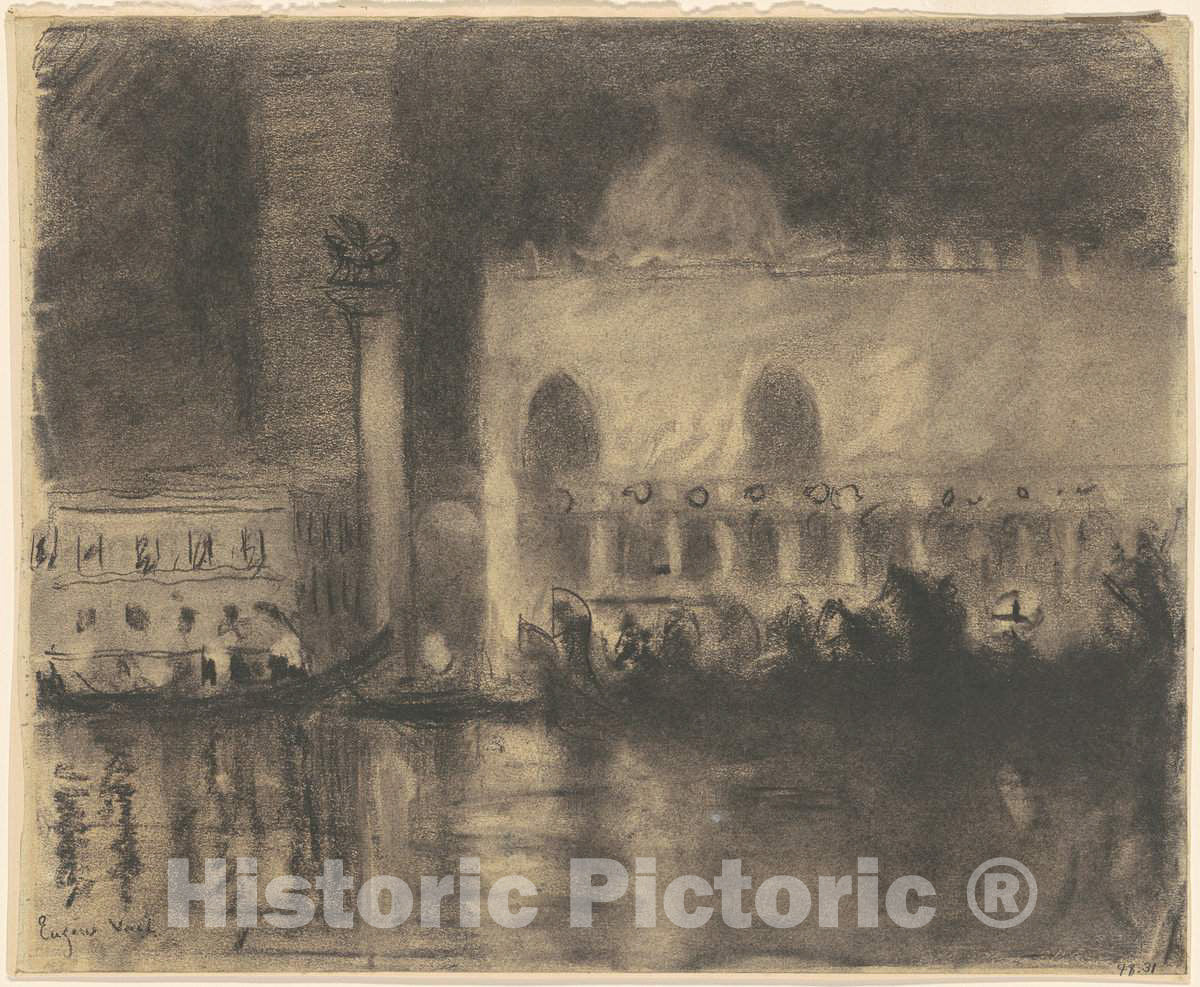 Artist: Eug?ne Vail | Drawing: Memory of Venice: the Palazzo Ducale and the Piazzetta | Original Medium: charcoal on wove paper mounted to wove paper