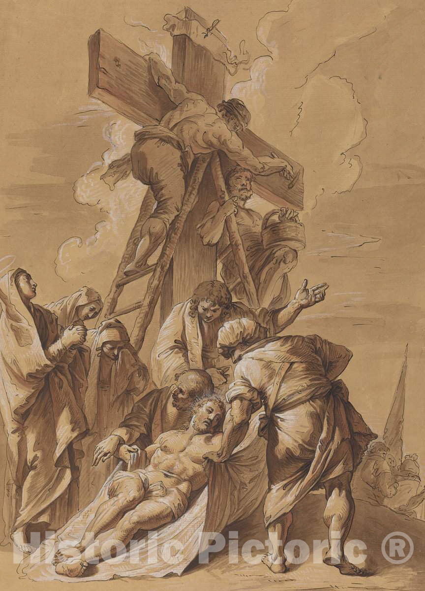 • .Art Print : Francesco Fontebasso, The Deposition, 18th Century - Vintage Wall Art