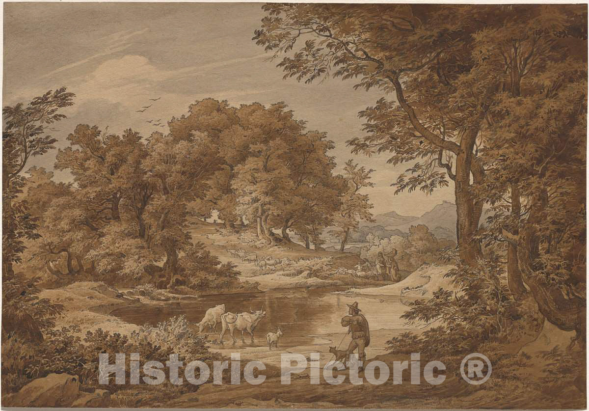 Art Print : Friedrich Preller The Elder, an Italianate Landscape with Shepherds, c. 1831 - Vintage Wall Art