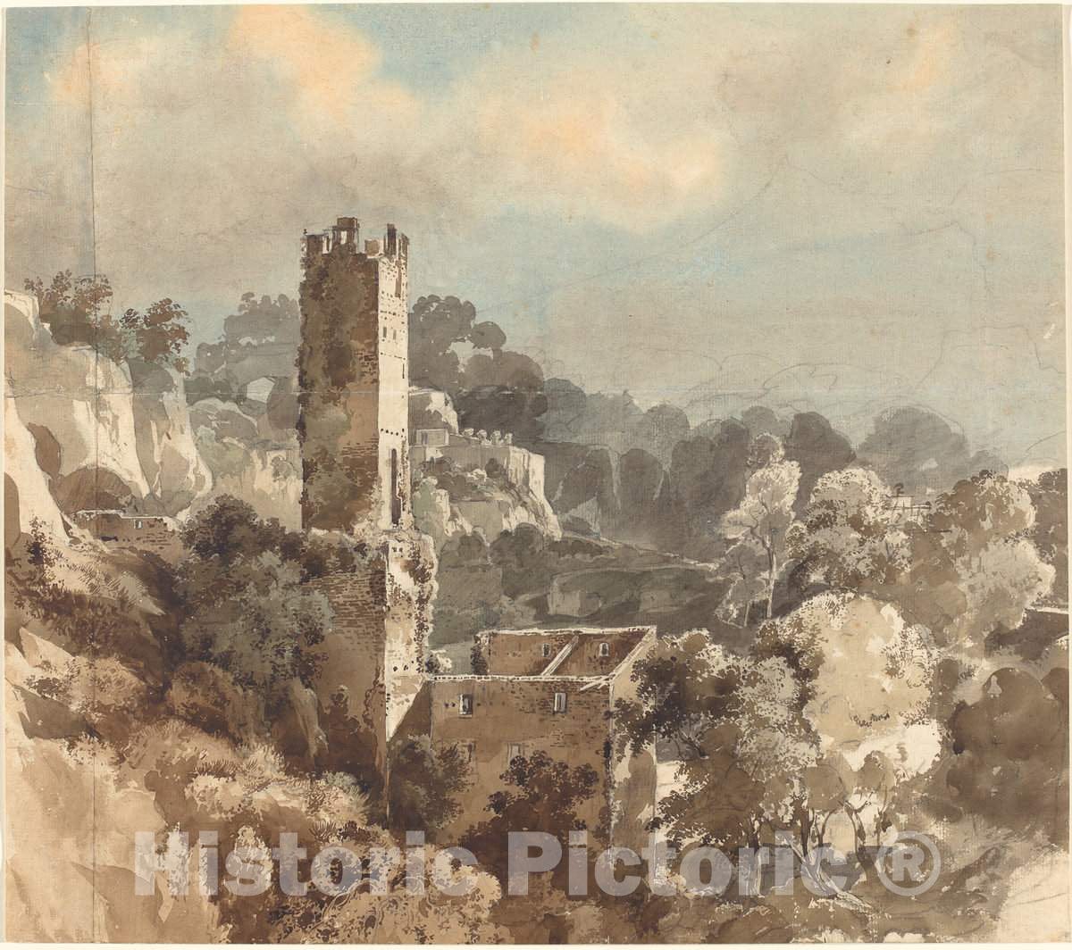 Art Print : Friedrich Salathé, Ruins of a Fortified Tower Among Wooded Hills, c.1819 - Vintage Wall Art