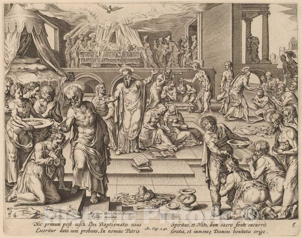 • .Art Print : Galle After Van Heemskerck, Many are Baptized - Vintage Wall Art