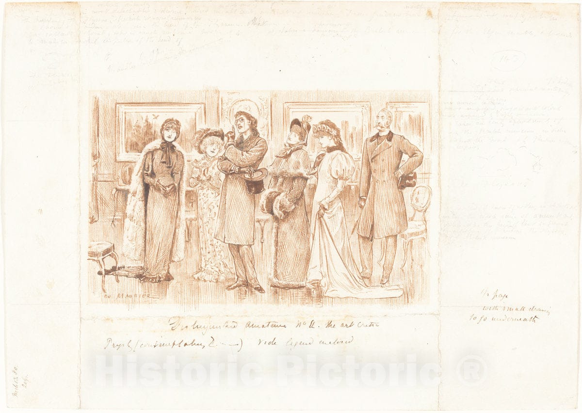 Artist: George Du Maurier | Drawing: Distinguished Amateurs no. II: The Art Critic | Original Medium: pen and brown ink over graphite with scratching-out on wove paper
