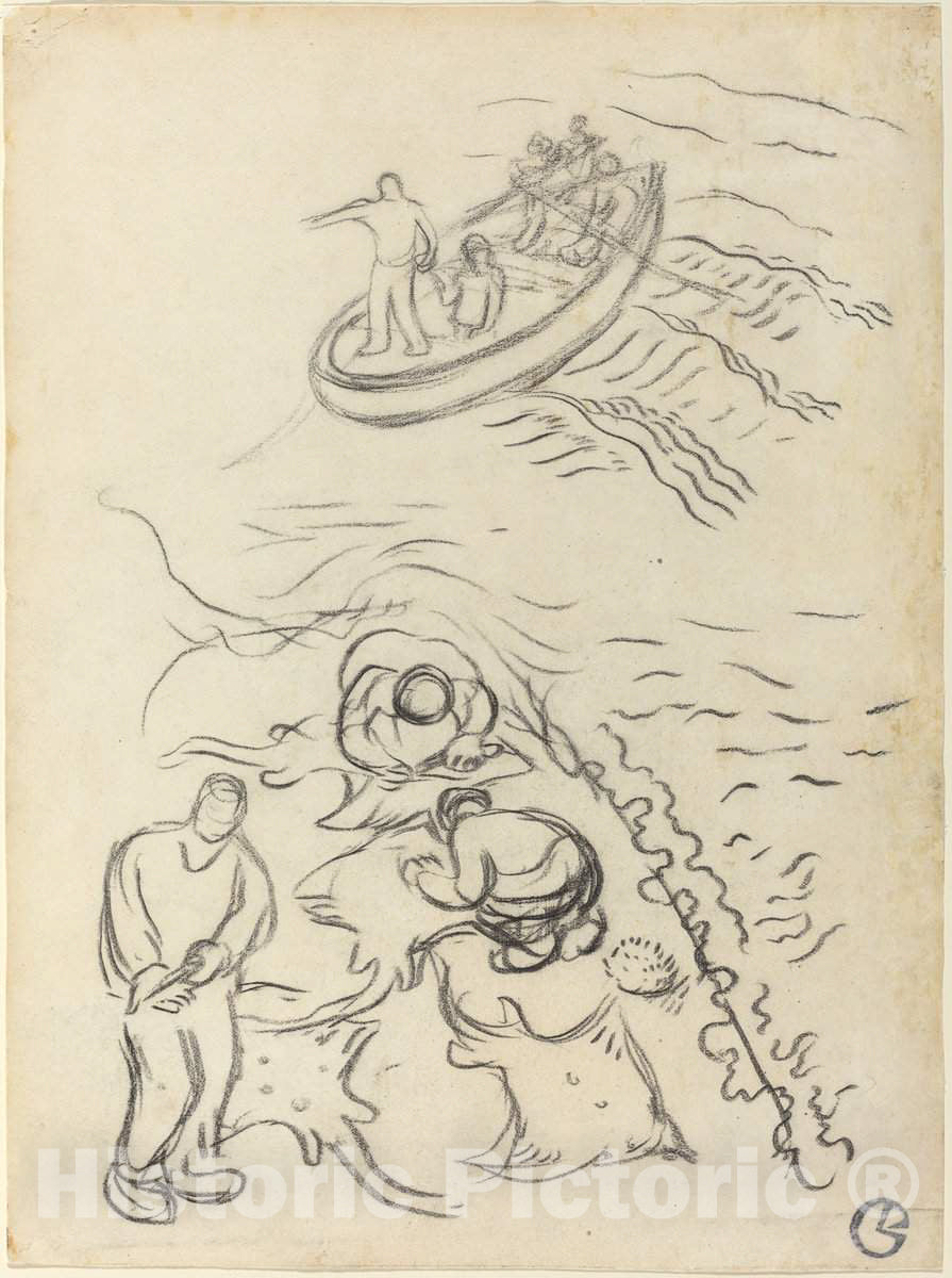 Artist: Georges Lacombe | Drawing: Study for "The Fishermen" with Men Emptying the Nets (Etude pour "Les P?cheurs" et hommes vidant des raies) | Original Medium: charcoal