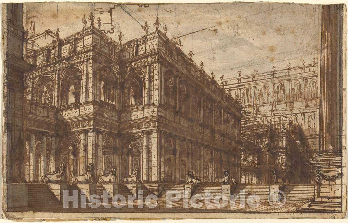 Artist: Giovanni Battista Piranesi | Drawing: An Ancient Forum with Porticos | Original Medium: pen and brown ink with gray wash over black chalk on laid paper
