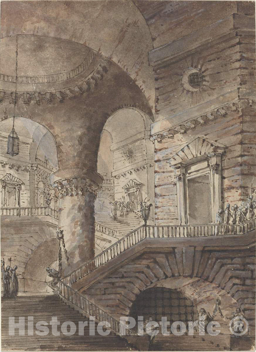 Artist: French 18th Century Follower of Giovanni Battista Piranesi | Drawing: Roman Prison | Original Medium: pen and black ink with brown and gray wash heightened with white gouache over traces of graphite on laid paper