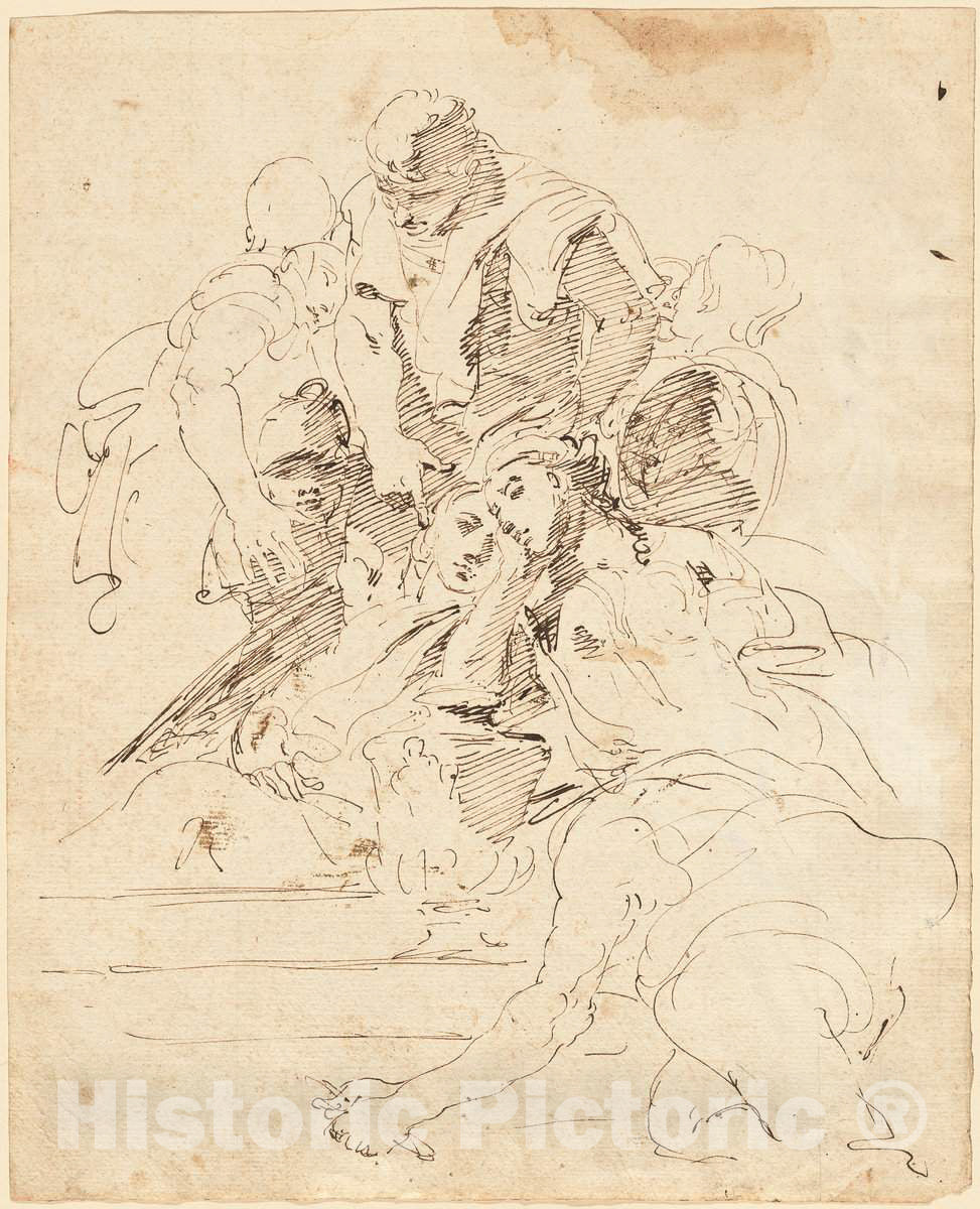 Art Print : Giovanni Battista Tiepolo, Classical Figures Gathered Around an Urn, c.1727 - Vintage Wall Art