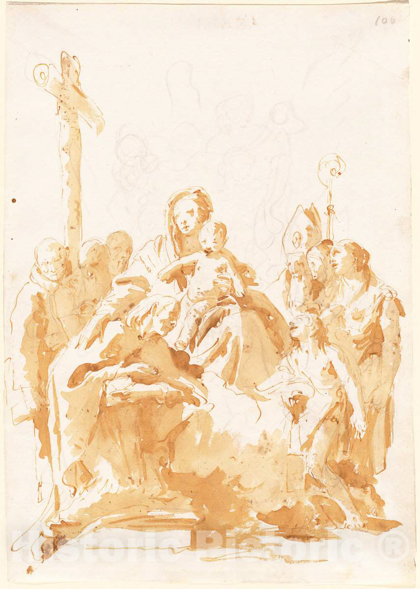 Art Print : Giovanni Battista Tiepolo, The Virgin and Child Adored by Bishops, Monks, and Women, c.1738 - Vintage Wall Art