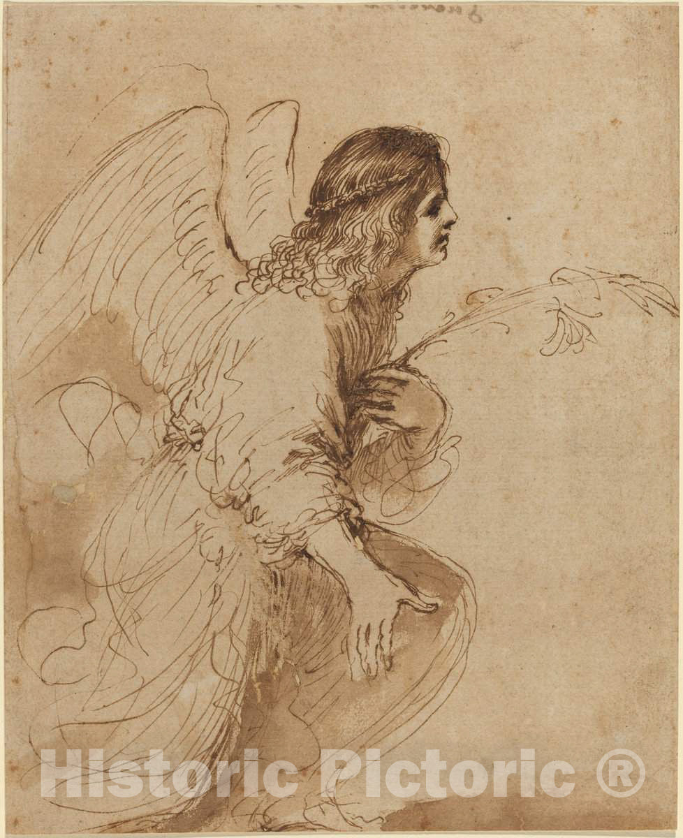 Artist: Giovanni Francesco Barbieri, called Guercino | Drawing: The Angel of the Annunciation | Original Medium: pen and brown ink with brown wash on laid paper