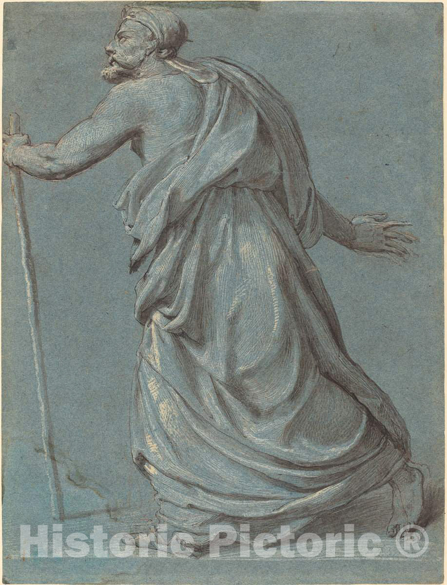 Art Print : Girolamo Siciolante, Study of a Man Walking Towards The Left Holding a Staff - Vintage Wall Art