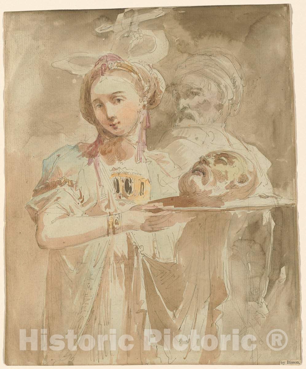 Artist: Giuseppe Bernardino Bison | Drawing: Salome with the Head of Saint John the Baptist | Original Medium: pen and brown ink with watercolor and brown-gray wash over black chalk, with touches of red chalk in Salom's lips and by her mouth, on laid p