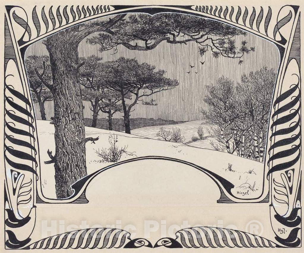 Art Print : Hermann Hirzel, A Winter Landscape Within a Jugendstil Border, 1902 - Vintage Wall Art
