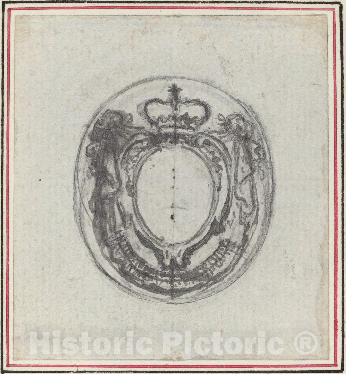Art Print : Hubert François Gravelot, Armorial Cartouche with Crown and Swags - Vintage Wall Art