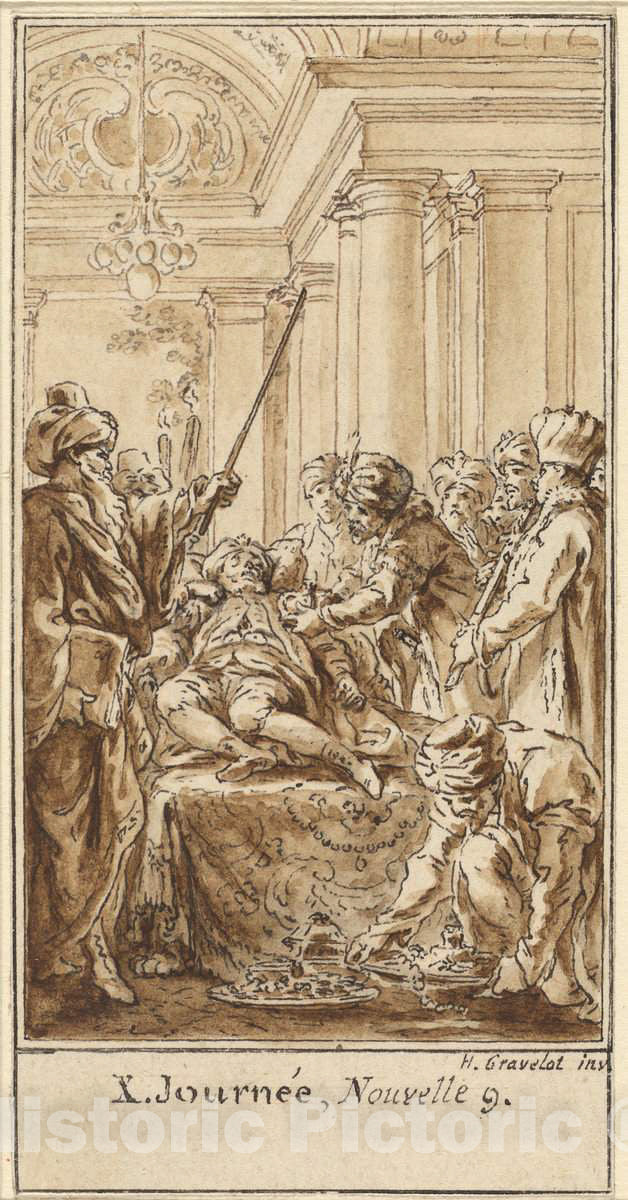 Art Print : Hubert François Gravelot, Tenth Day, Ninth Story: Saladin Bestows Rich Gifts on The Sleeping Torello, c. 1757 - Vintage Wall Art