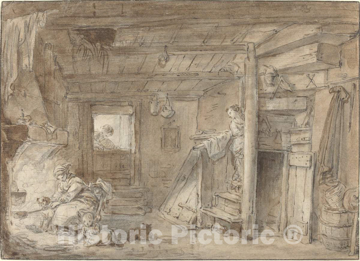 Art Print : Hubert Robert, Interior of a Farmhouse with Figures, Late 18th Century - Vintage Wall Art