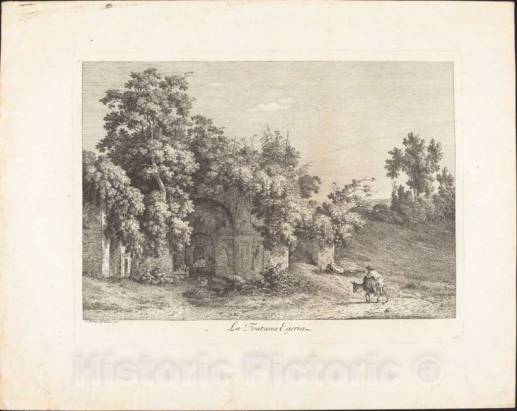 Art Print : Jacob Wilhelm Mechau, La Fontana Egeria, 1792 - Vintage Wall Art