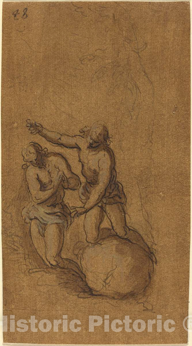 Artist: Jacopo Palma il Giovane | Drawing: The Baptism of Christ | Original Medium: pen and brown ink with brown wash heightened with light gold gouache on brown washed laid paper, laid down