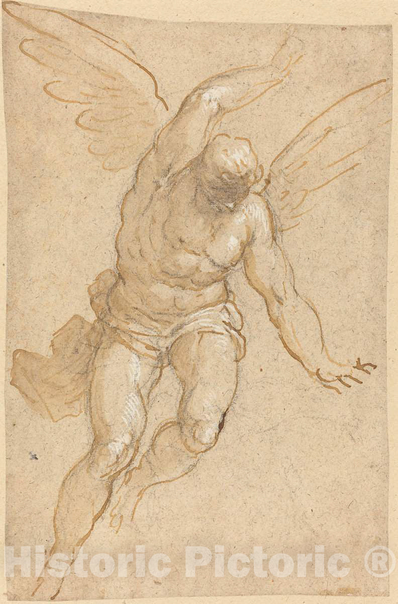 Artist: Jacopo Palma il Giovane | Drawing: A Flying Angel | Original Medium: pen and brown ink, heightened with white, over black chalk on laid paper