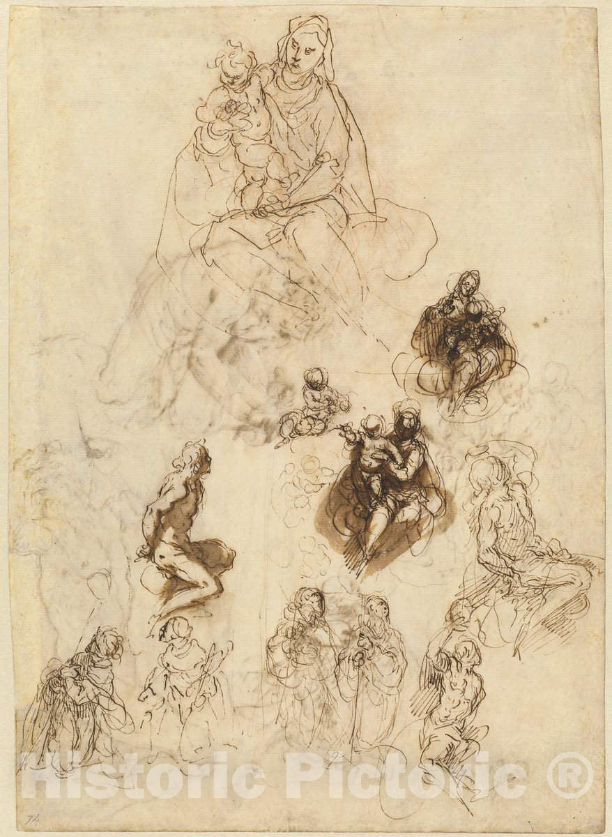Art Print : Jacopo Palma il Giovane, Studies of The Virgin and Child with Saints, c. 1611 - Vintage Wall Art