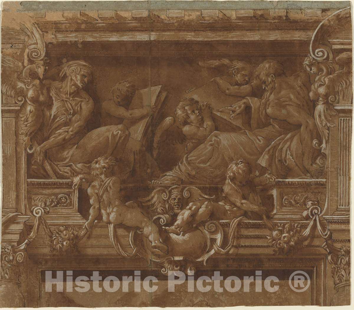 Artist: Italian 16th Century, after Jacopo Zanguidi, called Bertoia | Drawing: Prophet and Sybil | Original Medium: pen and brown ink with brown wash over graphite, heightened with white, on two joined sheets of laid paper, mounted to canvas