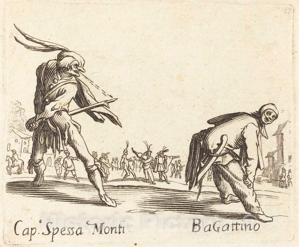 Art Print : Jacques Callot, Cap. Spessa Monti and Bagattino - Vintage Wall Art