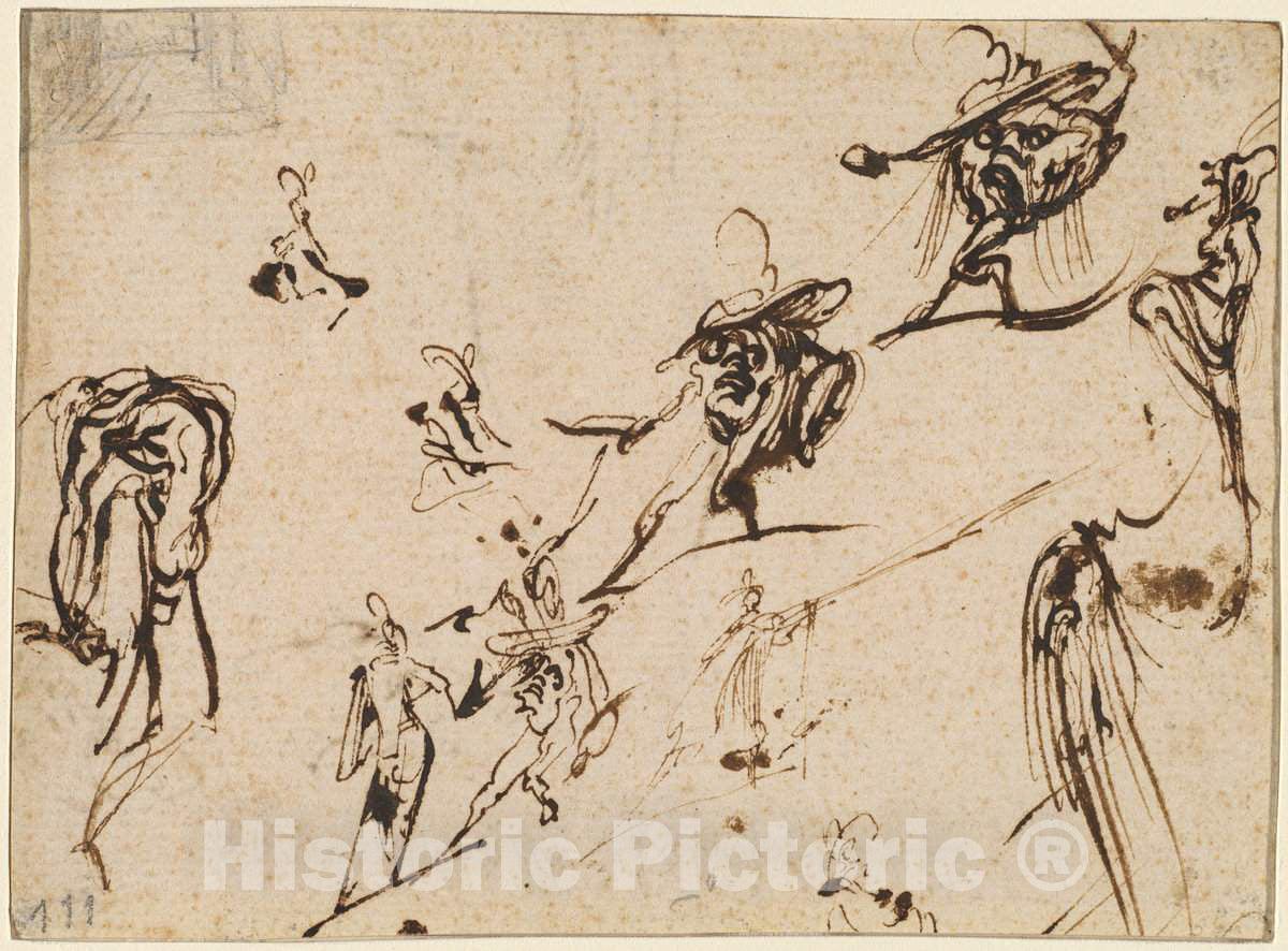 Artist: Jacques Callot | Drawing: Gobbi and Other Bizarre Figures | Original Medium: pen and iron gall ink with a partial sketch in graphite at upper left on laid paper