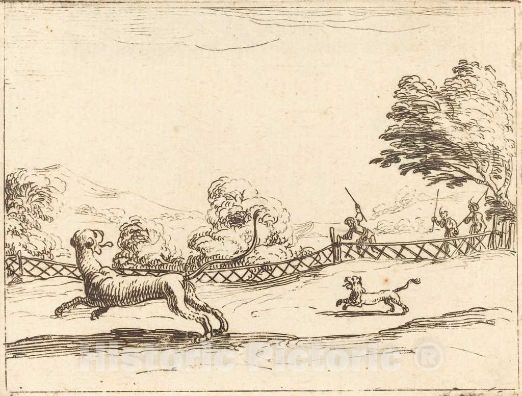 Artist: Jacques Callot | Print: Lioness and Cub Pursued by Hunters | Original Medium: etching