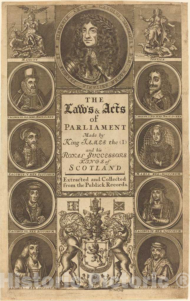Art Print : James Clark, Frontispiece to The Laws and Acts of Parliament Made by King James I - Vintage Wall Art