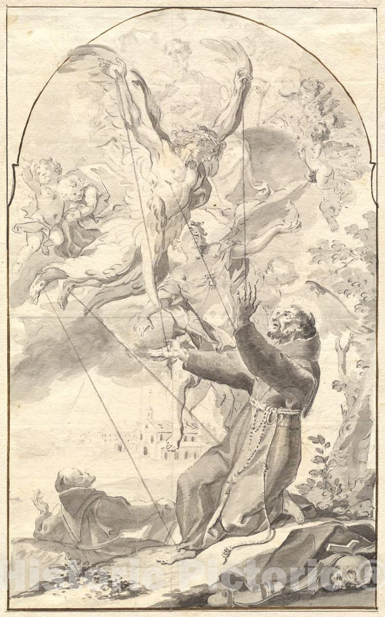 Artist: Johan Baptist Enzensberger | Drawing: The Stigmatization of Saint Francis | Original Medium: pen and brown ink with gray wash over graphite on laid paper