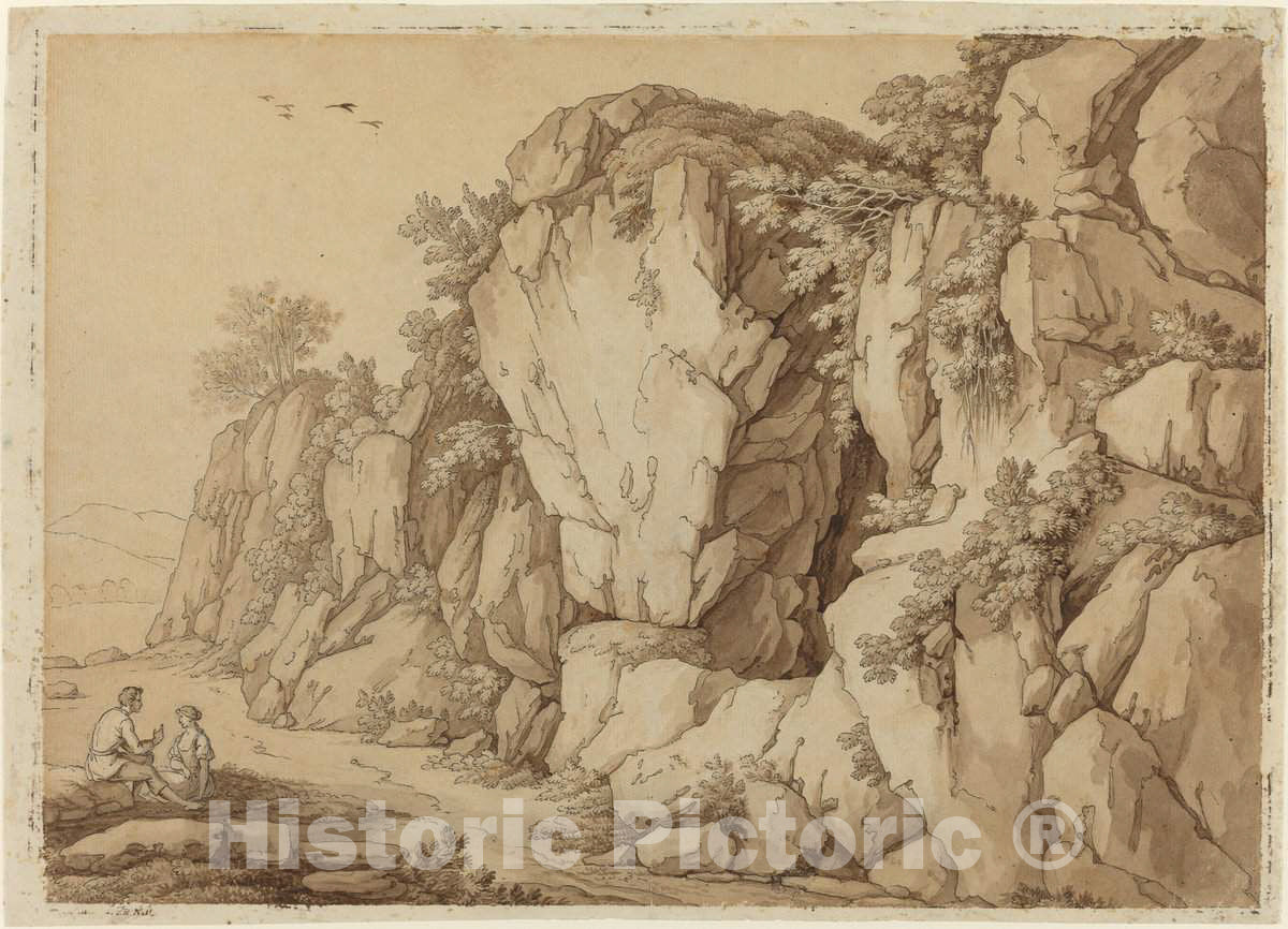Artist: Johann August Nahl II | Drawing: A Young Couple Seated near a Massive Rock Formation | Original Medium: pen and brown ink with brown wash over graphite on laid paper
