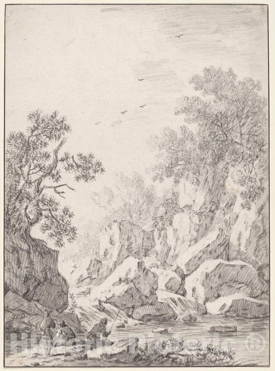 Art Print : Johann Christoph Dietzsch, A Waterfall by Rock Cliffs, 1750s(?) - Vintage Wall Art