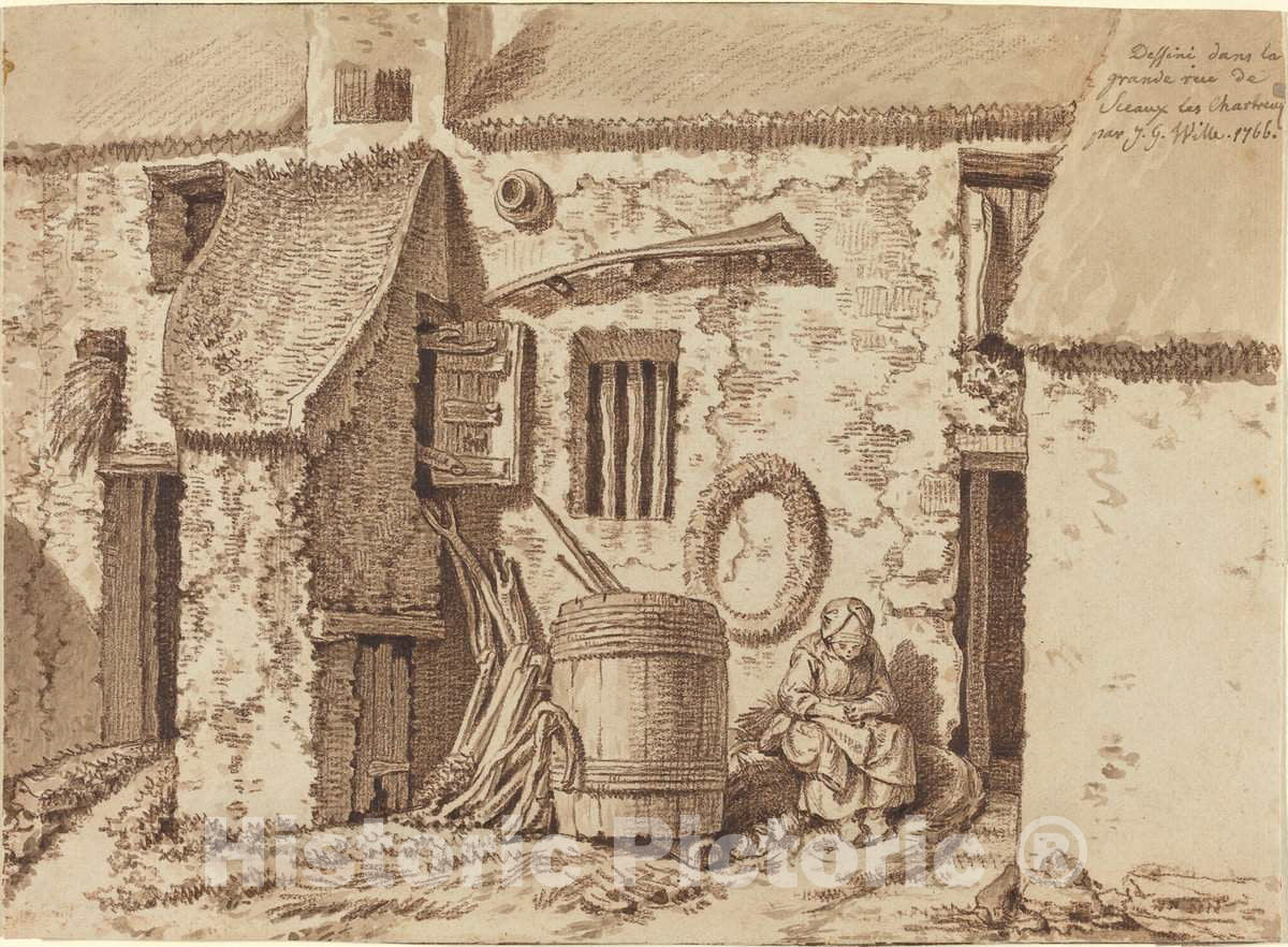 Art Print : Johann Georg Wille, A Rustic House in The Grand Rue at Sceaux-Les-Chartreux, 1766 - Vintage Wall Art
