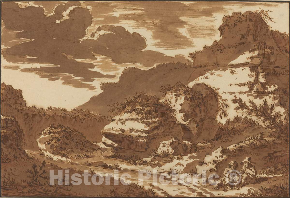 Art Print : Johann Georg Wille, Two Children Seated Near Overgrown Ruins, 1758 - Vintage Wall Art