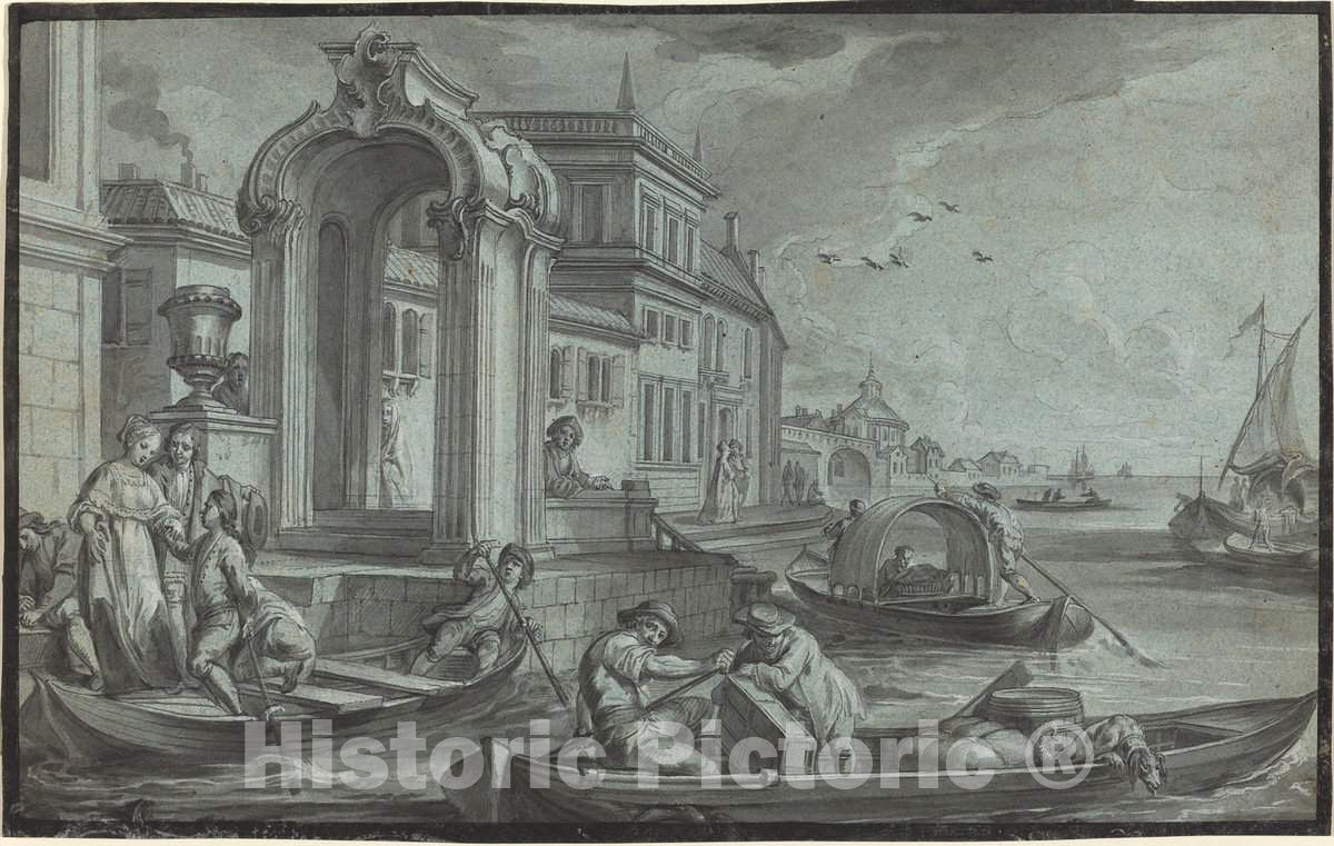 Art Print : Johann Wolfgang Baumgartner, Venetian Fantasy with an Ornamental Arch, 1750s - Vintage Wall Art