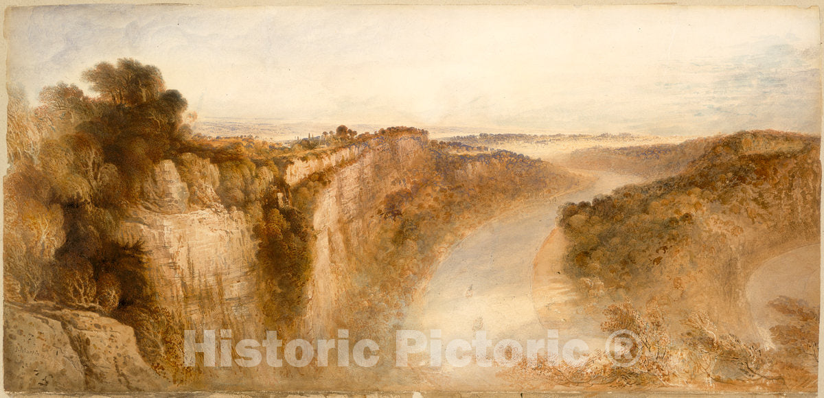 Artist: John Martin | Drawing: View on the River Wye, Looking towards Chepstow | Original Medium: watercolor, gouache, and touches of oil paint (?) over graphite with scraping out, heightened with varnish and/or gum arabic, on wove paper